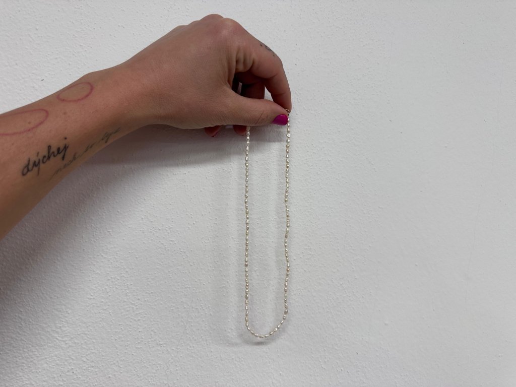 Na rozdíl od běžných perlových náhrdelníků jsou tyto perly drobnější a jemnější, ideální pro každodenní nošení i vrstvení s dalšími šperky. Vytvářejí decentní, ale nepřehlédnutelný detail, který podtrhne vaši osobitost i lásku k ručně vyráběným pokladům.