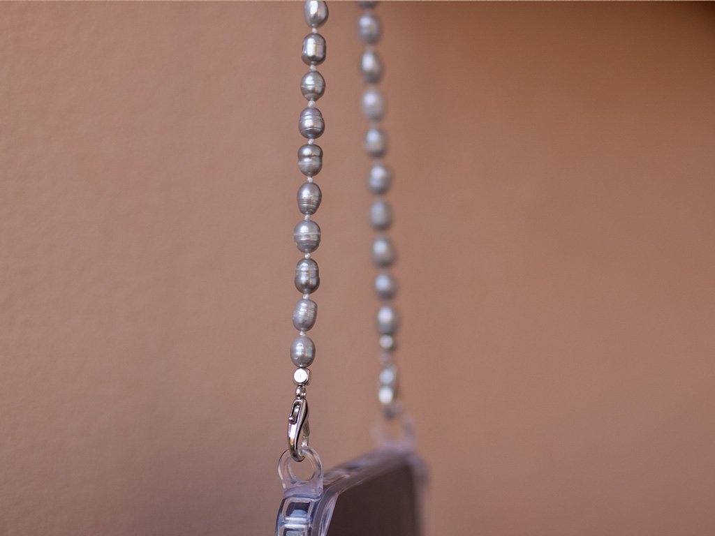 GULI - krátký perlový řetízek na mobil, šedé oválné perly